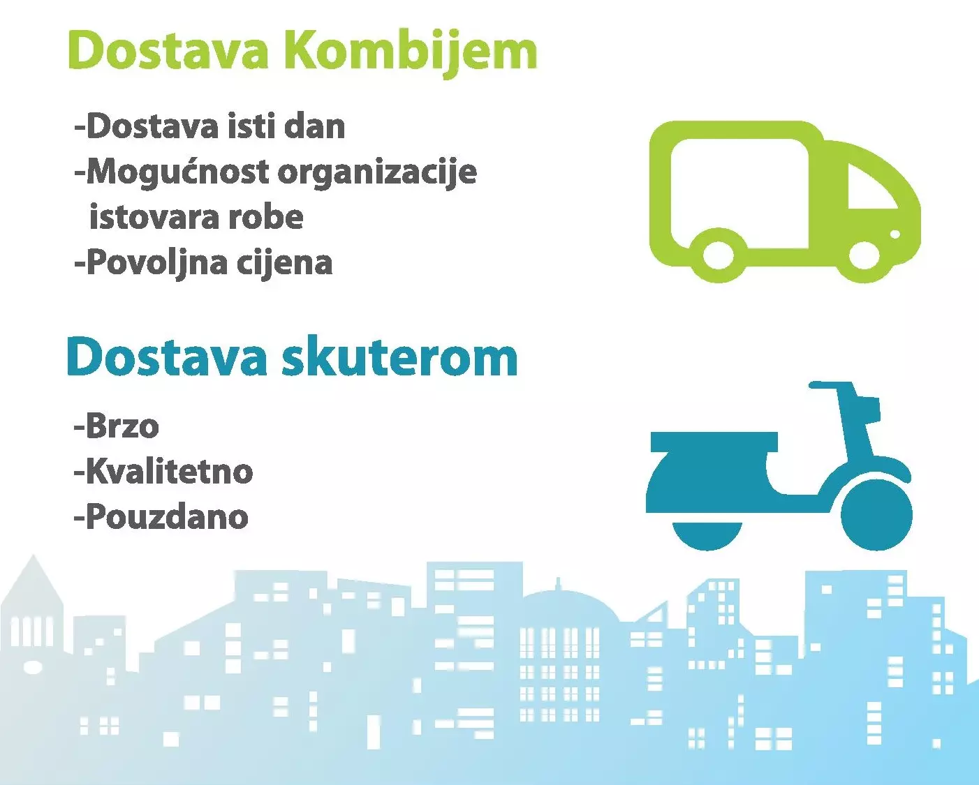 U sklopu temeljne djelatnosti tvrtka obavlja dostavu paketa po Zagrebu i cijeloj Hrvatskoj.