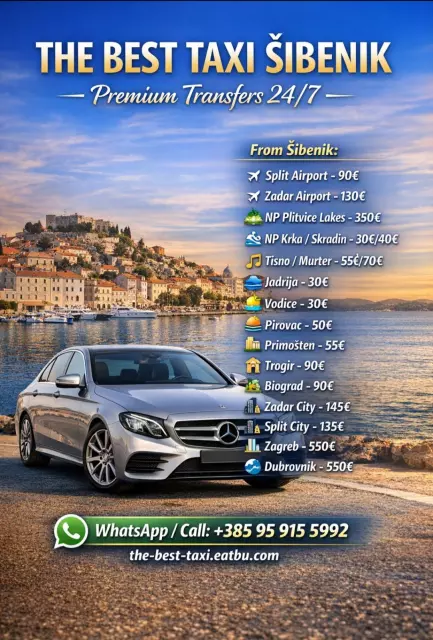If you're looking for the cheapest taxi rides in Šibenik, THE BEST TAXI is your ideal choice for affordable, safe, and comfortable rides within the city and surrounding areas. Our service offers the most competitive taxi fares without compromising on service quality.