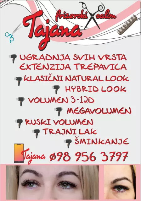 Frizerski salon i ugradnja trepavica usluge su koje za Vas u ponudi ima obrt TAJANA, te svakako svratite na vrhunsku uslugu.