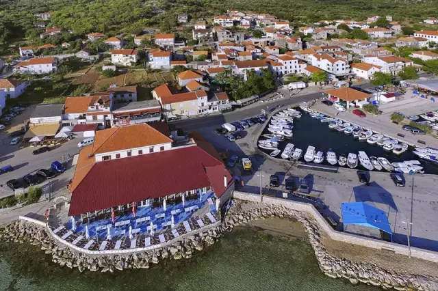 Nalazi se nedaleko od trajektnog pristaništa i pruža kompletne usluge smještaja i prehrane.