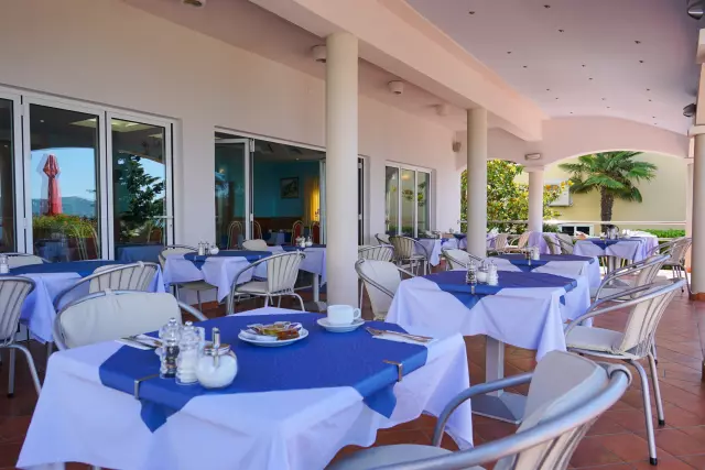 U ponudi hotela na usluzi Vam stoji ljubazno osoblje, aperitiv bar, restoran-bar (domaća jela iz kvalitetne kuhinje hotela), velika panoramska terasa, ugodna atmosfera, udobne sobe s balkonima od kojih većina gleda na more, a osim vlastitog balkona svaka soba ima klima uređaj te kupaonicu s tušem.