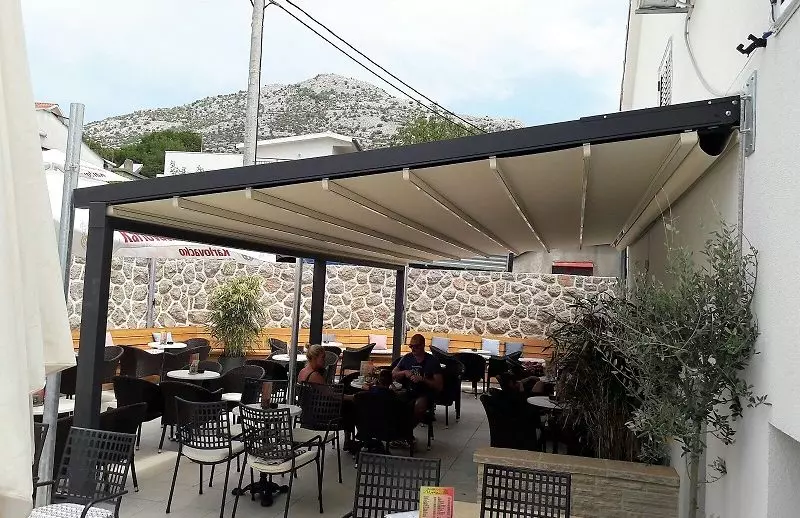Bočni i prednji dijelovi tende imaju mogućnost zatvaranja u staklo. Platno koje se koristi za izradu tende je vrhunske kvalitete, a black out izvedba sprječava prodor sunčevih zraka.