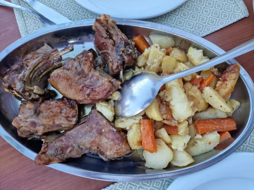 Restoran je prvenstveno fokusiran na tradicionalna jela, s posebnim naglaskom na ukusnu janjetinu na žaru i svježu hobotnicu, a oba naglašavaju lokalne okuse i kulinarsku tradiciju. Svako je jelo pripremljeno s pažnjom, koristeći svježe namirnice koje često dolaze od lokalnih proizvođača.