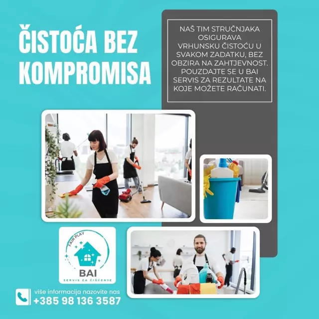 Čistoća je prvi dojam koji govorite o vašoj tvrtki, a BAI ga čini savršenim. Uredan prostor nije samo luksuz nego i potreba. Specijalizirani smo za kompletno čišćenje poslovnih prostora, nudeći profesionalne, fleksibilne i diskretne usluge čišćenja prilagođene svakoj tvrtki, uredu ili poslovnom objektu.