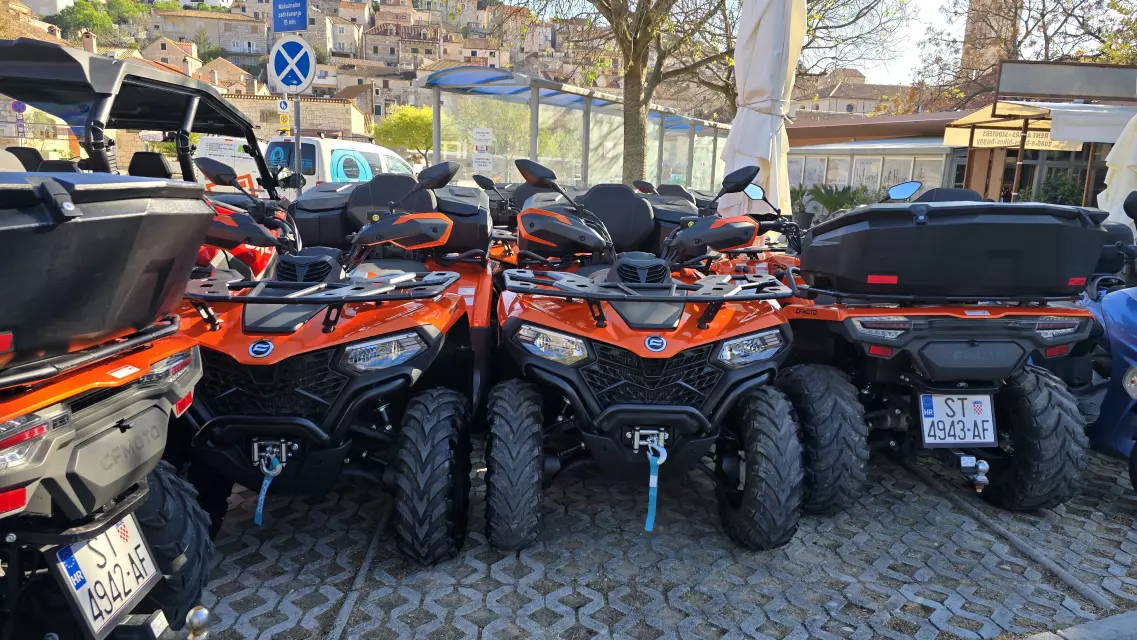 Hi Jessica We have new quads and more of them Price is for one day 600 KN Our location in in center,between bus station and supermarket Konzum All info: hvar.rent@gmail.com 00 385 (0) 91 2400 552