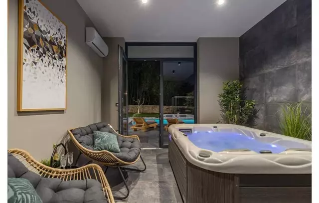 Prekrasno i kvalitetno opremljena, unutar ove luksuzne građevine nalazi se jacuzzi te wellness. Također, na raspolaganju je, između ostalog, i sauna kako bi usluga opuštanja bila kompletna.