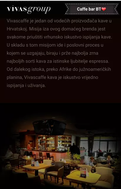 Poslužuju VIVAS kavu, a u slučaju da Vam treba brzi servis automobila, svakako im se obratite jer dok vi ispijate finu kavu, oni će za Vas osposobiti automobil za daljnje putešestvije.