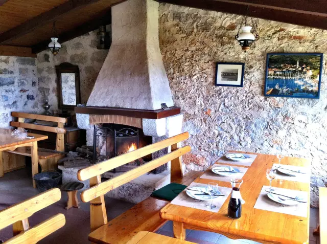 🔸 Atmosfera u stilu konobe – drvene grede, kamen i toplina prostora isijavaju autentičnost i osjećaj doma.