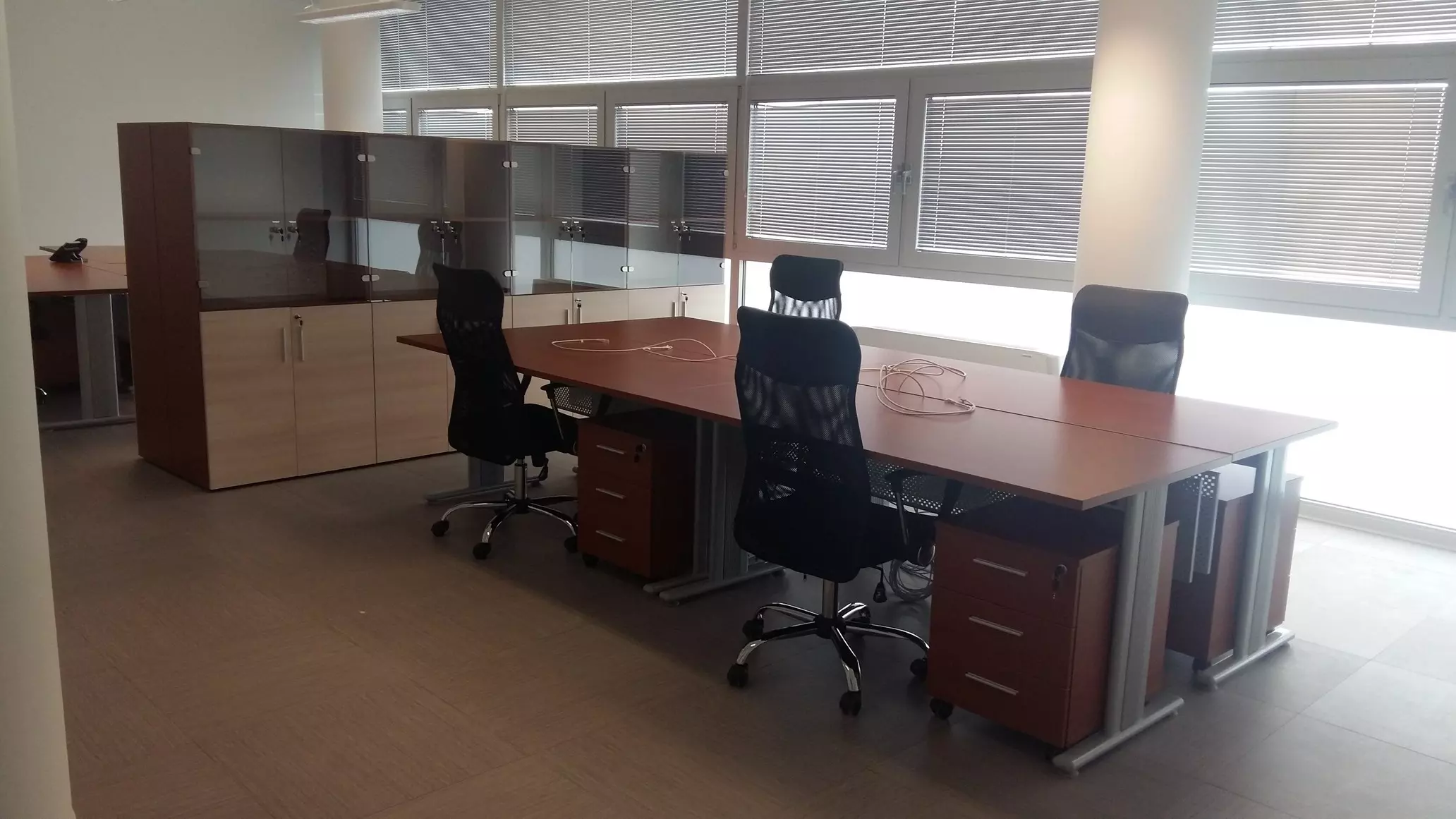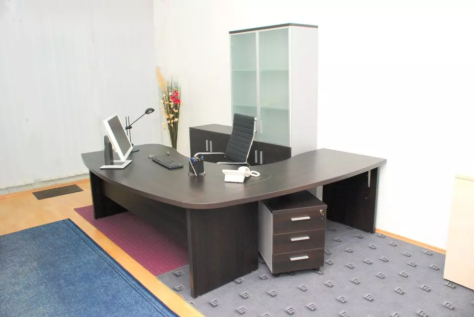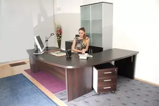 Tvrtka vrši opremanje ureda modernim, funkcionalnim i profesionalnim uredskim namještajem: radnim stolovima, pregradama, stolicama, ormarima i ladičarima.