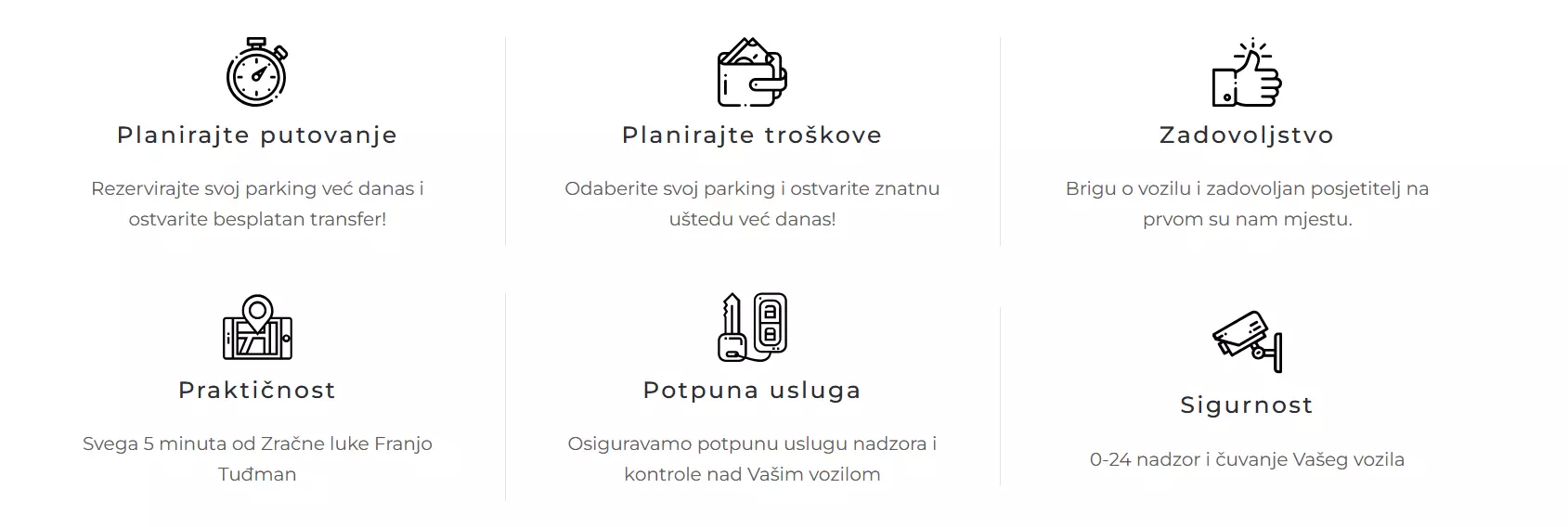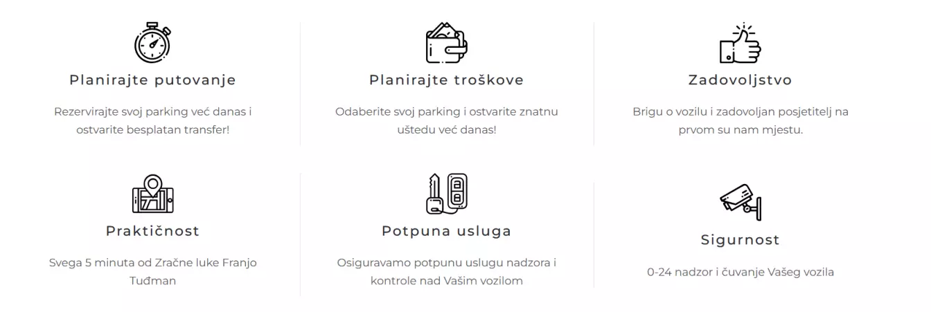 Rezervirajte svoj parking već danas i ostvarite besplatan transfer. Zračna luka nalazi se na svega pet minuta od parkinga.