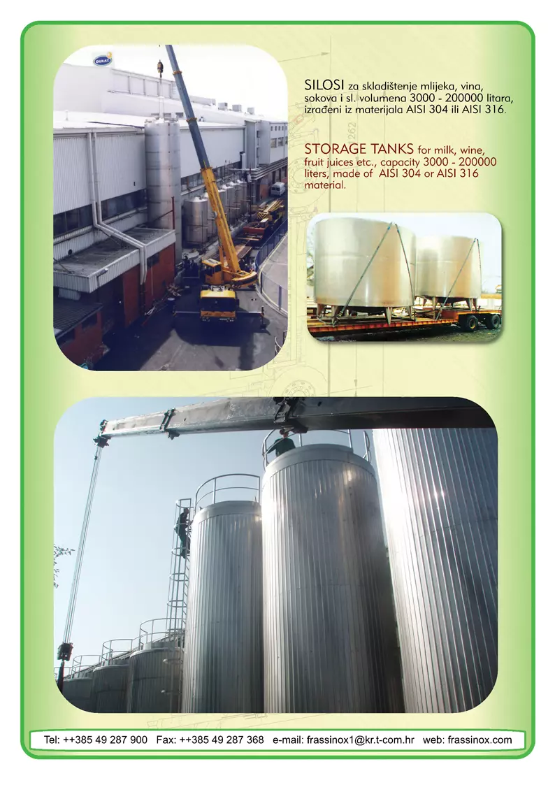 Tu su i obrade sokova i vode (izrada linija za pranje tehnoloških postrojenja, izrada linija za pripremu voda za dijalizu, izrada linija za gradski vodovod).