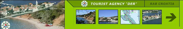 Smještaj u sobama, apartmanima i hotelima nudi turistička agencija DER d.o.o. na Rabu, koja se bavi iznajmljivanjem soba, apartmana, vila, hotela i kampova. Za ostale informacije obratiti se na navedeni kontakt.