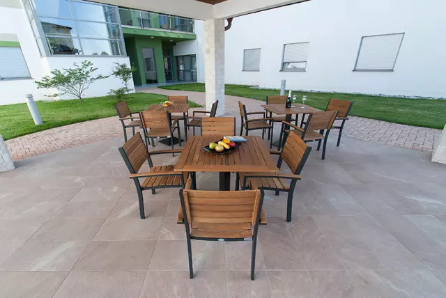 Okolne, vanjske površine ukusno su hortikulturalno uređene s dražesnom, natkrivenom terasom koja će postati omiljeno mjesto Vašeg zajedničkog druženja.