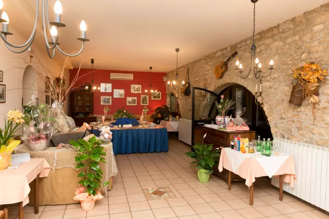 U ponudi ima tradicionalnu istarsku kuhinju, domaću tjesteninu i meso. Također možete uživati u ugodnom i mirnom ambijentu terase. U sklopu konobe nalaze se sobe i apartmani opremljeni klimom, TV-om i internetom.