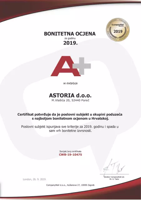 ASTORIA d.o.o. je poduzeće koje je osnovano na području Istarske županije u gradu Poreču, a djeluje od 2007. godine na području Istarske županije.
