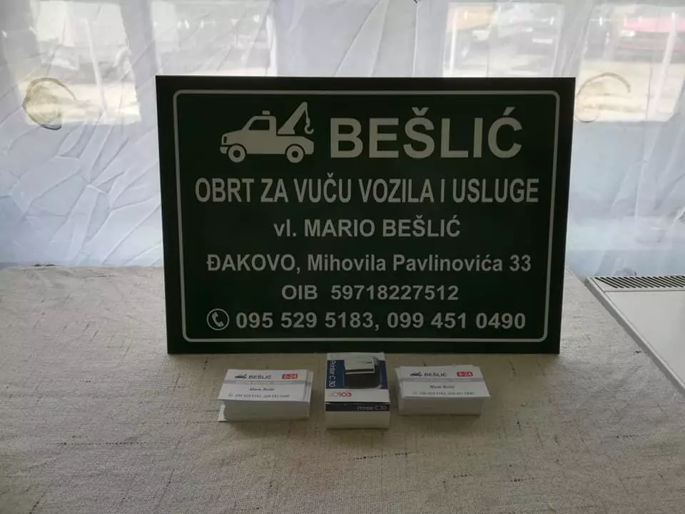 BEŠLIĆ, obrt za vuču vozila i usluge, vl. Mario Bešlić, obrt je osnovan 2018. godine, sa sjedištem u Đakovu, na adresi Mihovila Pavlinovića 33.